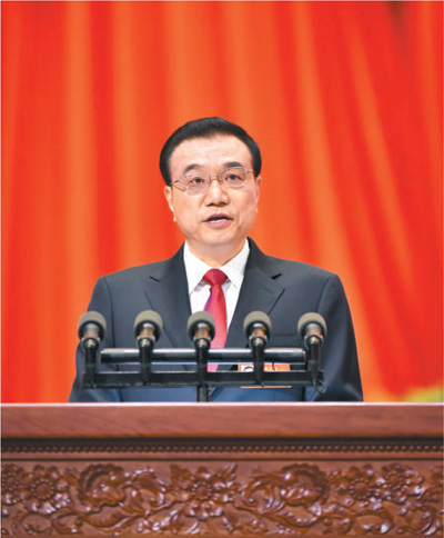 | 3月5日,李克强总理代表国务院在十二届全国人大五次会议上作《政府工作报告》。 本报记者 李 舸摄 |